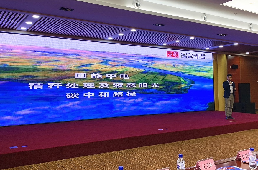 令人驚喜的是,國能中電多項綠色低碳技術(shù)和多個精品項目集中亮相本次展會。尤其是風光生物質(zhì)聯(lián)合制儲氫(液態(tài)陽光)一體化碳中和技術(shù)的推出,引起了業(yè)界專家和現(xiàn)場觀眾的極大興趣,吸引了眾多的產(chǎn)業(yè)孵化項目專家以及技術(shù)相關(guān)方前來交流,多家媒體記者進行了采訪報道。在同期舉辦的高峰論壇上,國能中電以“秸稈處理及液態(tài)陽光碳中和路徑”為主題,圍繞秸稈綜合利用與風光生物質(zhì)聯(lián)合制儲氫(液態(tài)陽光)技術(shù)進行了專場推介。